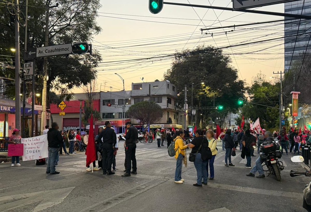 Ciudad de México, 28 de abril de 2026.— Vecinos de la colonia Santa Cruz Atoyac, en la alcaldía Benito Juárez, mantienen un bloqueo sobre Avenida Cuauhtémoc en protesta contra un megaproyecto inmobiliario que califican como irregular, denunciando falta de consulta pública, opacidad en los permisos y posibles afectaciones a la calidad de vida en la zona.