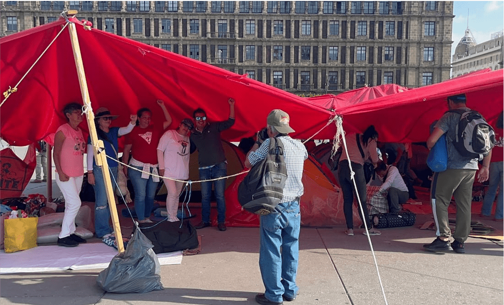 CDMX a 23 de mayo, 2025.- Desde el 15 de mayo de 2025, la Coordinadora Nacional de Trabajadores de la Educación (CNTE) mantiene un plantón en el Zócalo de la Ciudad de México, acompañado de bloqueos y movilizaciones en diversos puntos de la capital. Esta protesta, que ha escalado en intensidad, busca presionar al gobierno federal para atender una serie de demandas relacionadas principalmente con el sistema de pensiones y condiciones laborales del magisterio.