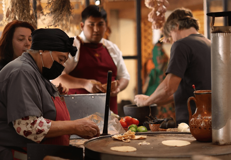 El entorno juega un papel crucial. Mientras comes, te vigila el mural «El maíz como el corazón de la comida mexicana» de Eduardo Robledo, una pieza que te recuerda que cada bocado tiene una carga simbólica. Además, Don José se toma en serio lo del «Kilómetro Cero». Cuentan con su propio huerto y granja, garantizando que lo que llega a tu mesa no viajó en congeladores, sino que salió de la tierra teotihuacana esa misma mañana.