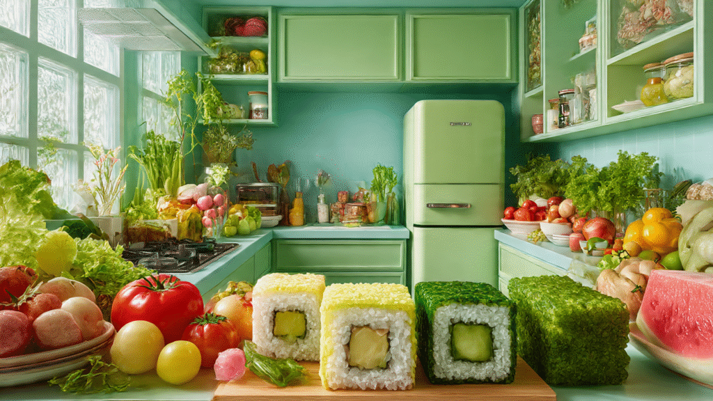 Lo curioso es que esta “comida visual” tiene su encanto: los tomates y pickles representan frescura; los mochi, suavidad y ternura; las cerezas, ese toque travieso que alegra cualquier outfit. Todo se mezcla en un lenguaje que no solo viste, sino que provoca sonrisa. Es como si el arte pop hubiera bajado a la mesa para quedarse en el comedor… y en el guardarropa.