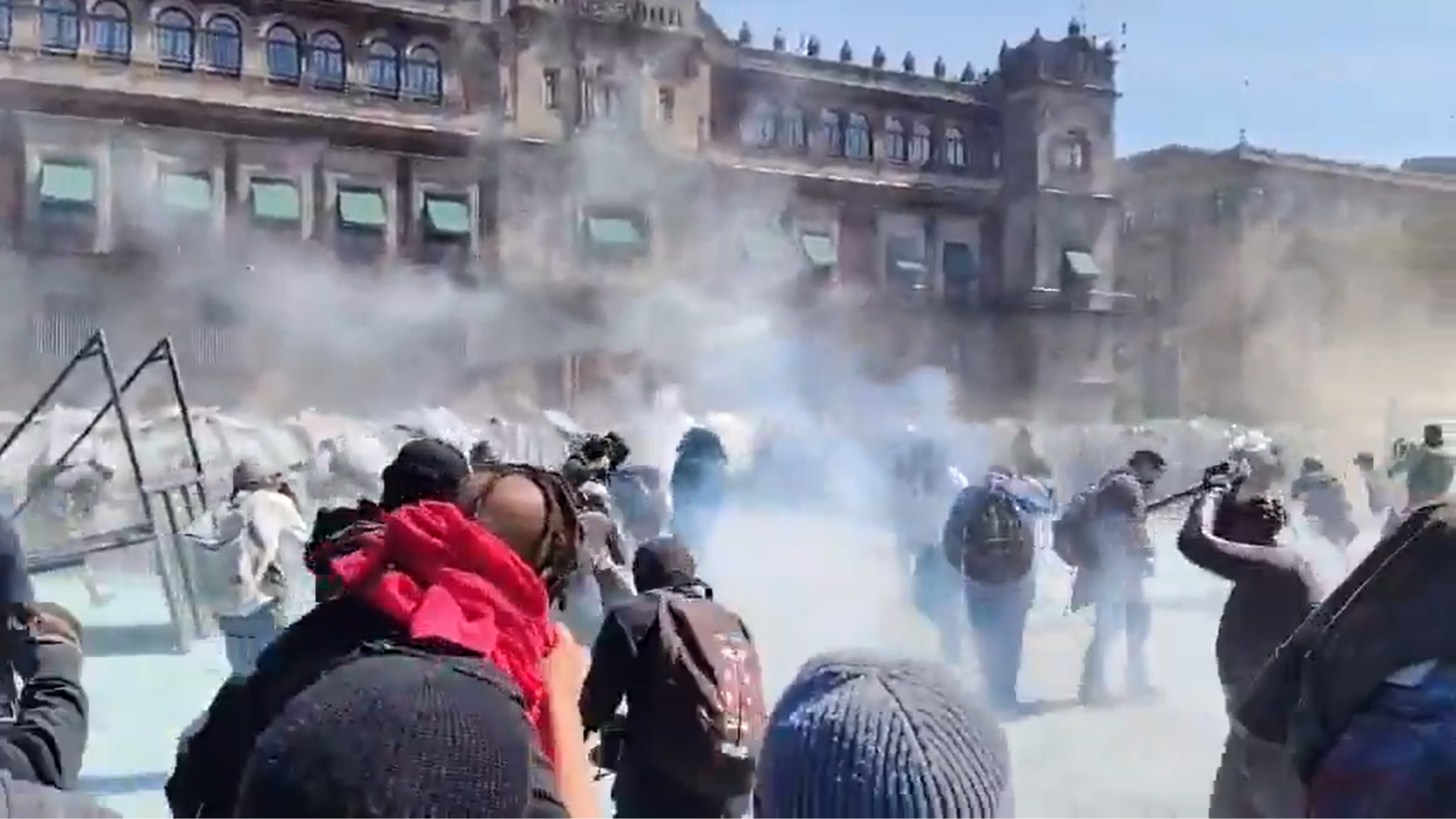 La respuesta de las autoridades incluyó el despliegue de cientos de policías de la Secretaría de Seguridad Ciudadana y la Guardia Nacional. Inicialmente, usaron extintores con polvo químico para replegar al grupo, seguido de disparos de gas lacrimógeno y, según videos circulantes, lanzamiento de piedras para cerrar las puertas del Palacio. No se reportan heridos graves ni detenciones masivas hasta las 20:00 horas, aunque el saldo preliminar menciona conatos de riña y el cierre total de accesos al Zócalo por el gobierno capitalino.