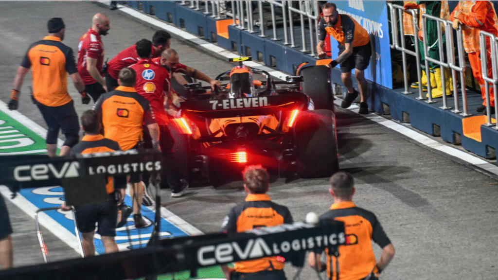 El caos no terminó ahí: al reiniciarse la práctica, Ferrari liberó a Charles Leclerc justo cuando Lando Norris (McLaren) salía de boxes, provocando un contacto que terminó con el auto del británico contra el muro.