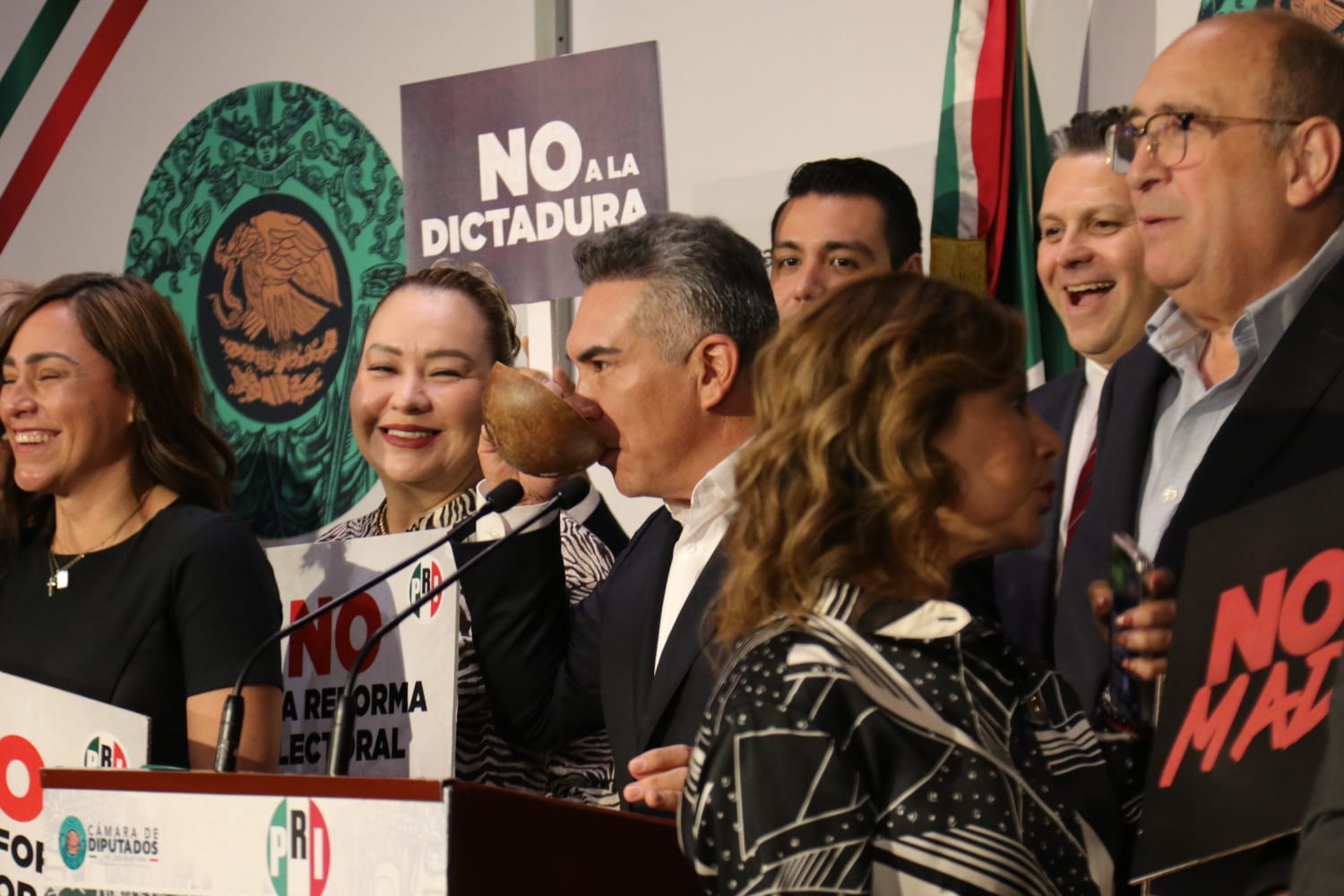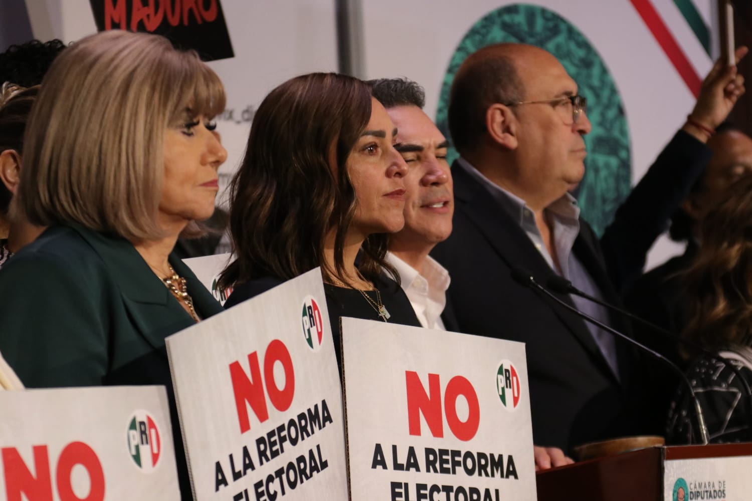 En conferencia de prensa diputados del PRI liderados por Humberto Moreira y el presidente nacional Alejandro Moreno, se pronunciaron contra la reforma electoral presentada por el ejecutivo federal. Fotos Bruno Cortés/Maya Comunicación