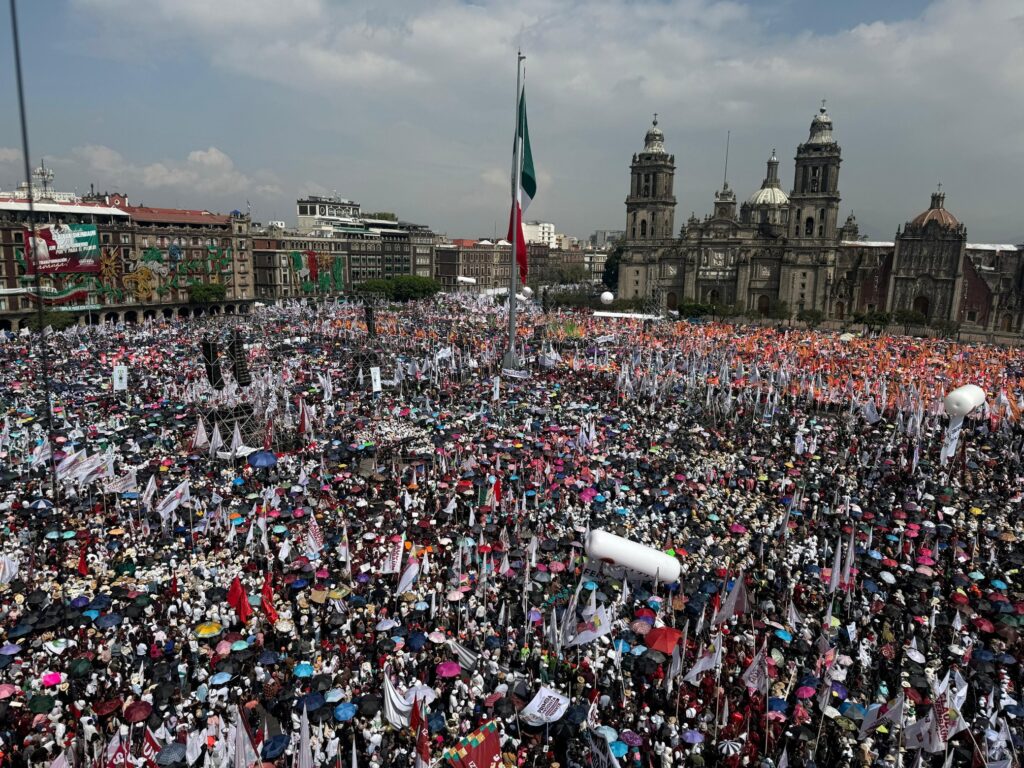 “Esta mañana me dieron los resultados hasta el mes de septiembre. En doce meses hemos reducido el homicidio doloso en treinta y dos por ciento. La reducción que hemos logrado en algunos estados es muy significativa, por ejemplo, Zacatecas, ochenta y ocho por ciento”, expresó Sheinbaum ante un Zócalo capitalino lleno.