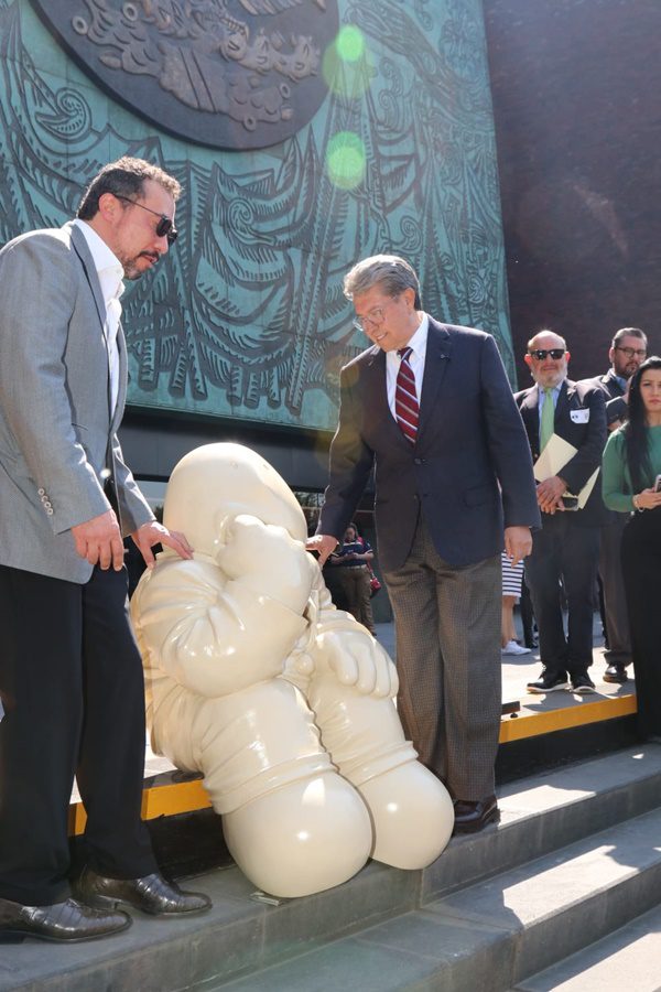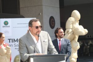 El recorrido fue un agasajo. Monreal y De la Sierra caminaron entre las piezas monumentales colocadas en la explanada principal. Se escucharon risas y murmullos cuando pasaron frente a una escultura de Timo sentado, esperando… una imagen que bien podría titularse «Trámite en Ventanilla Única». La atmósfera se sintió relajada, lejos de la tensión habitual de los debates parlamentarios, demostrando que el arte tiene esa maña de suavizar hasta al político más encopetado.